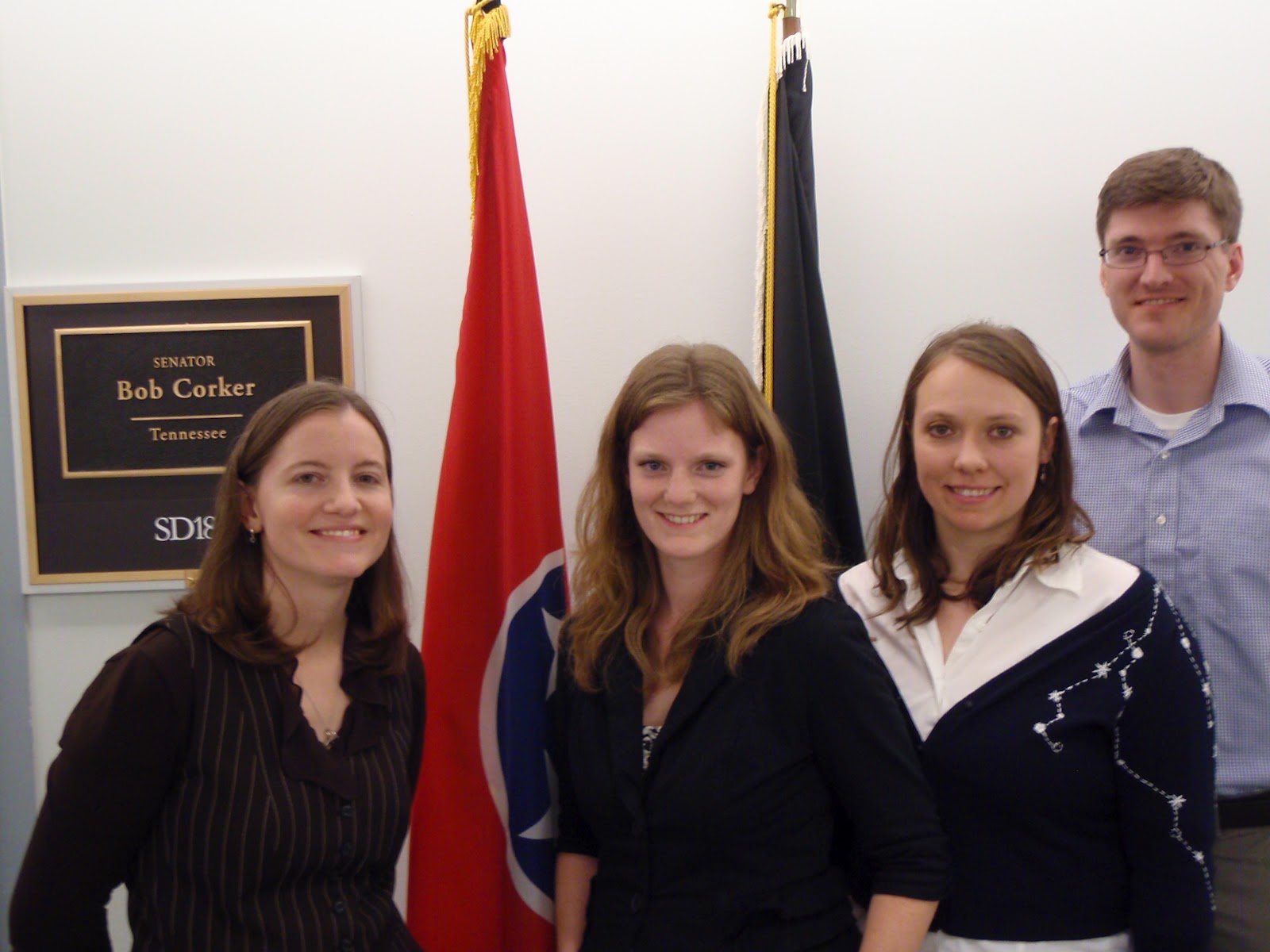 (From left) Kelly Sturner (NIMBioS), Jessica Bryant (EEB), and Emily Austin (EEB) met with Hunter Bethea, a legislative assistant of Sen. Corker.